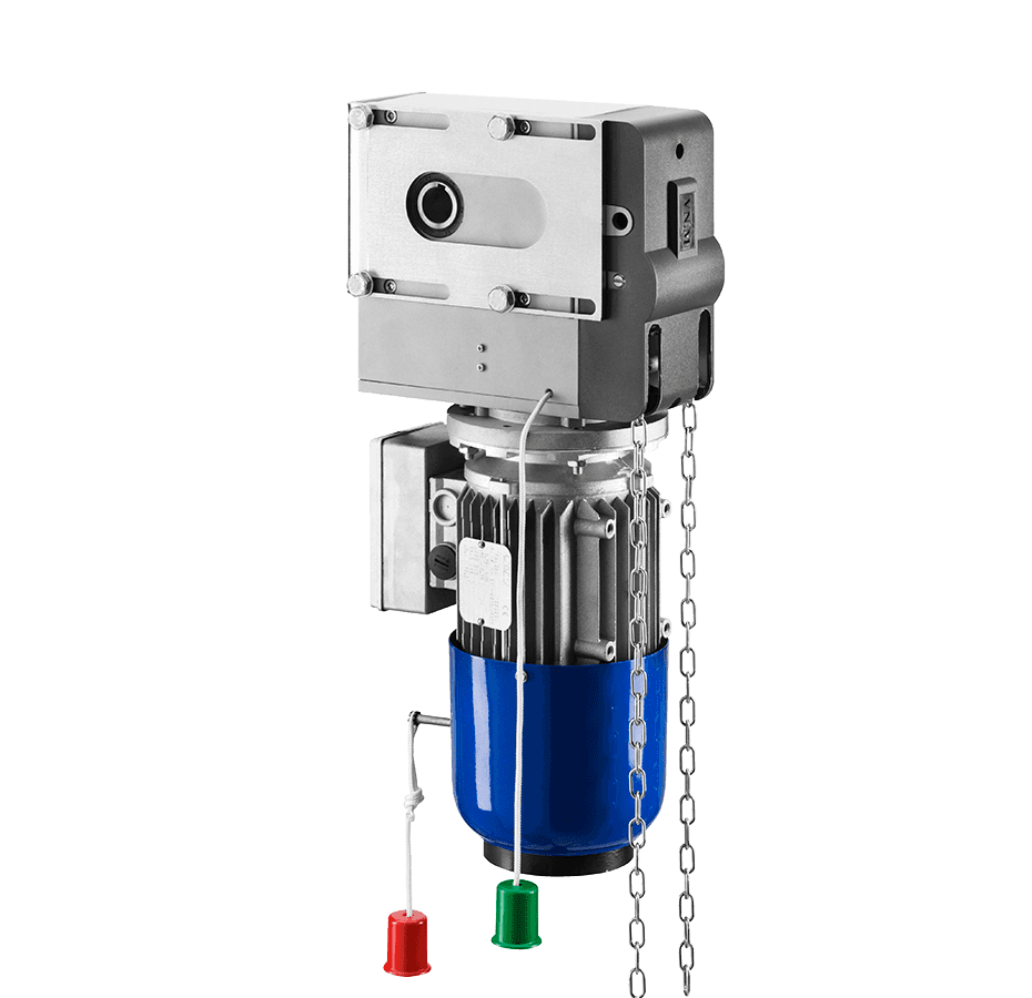 Manuel zincir hareketi ve 1/40 redüksiyon oranlarına sahip 400 Vac dişli motoru