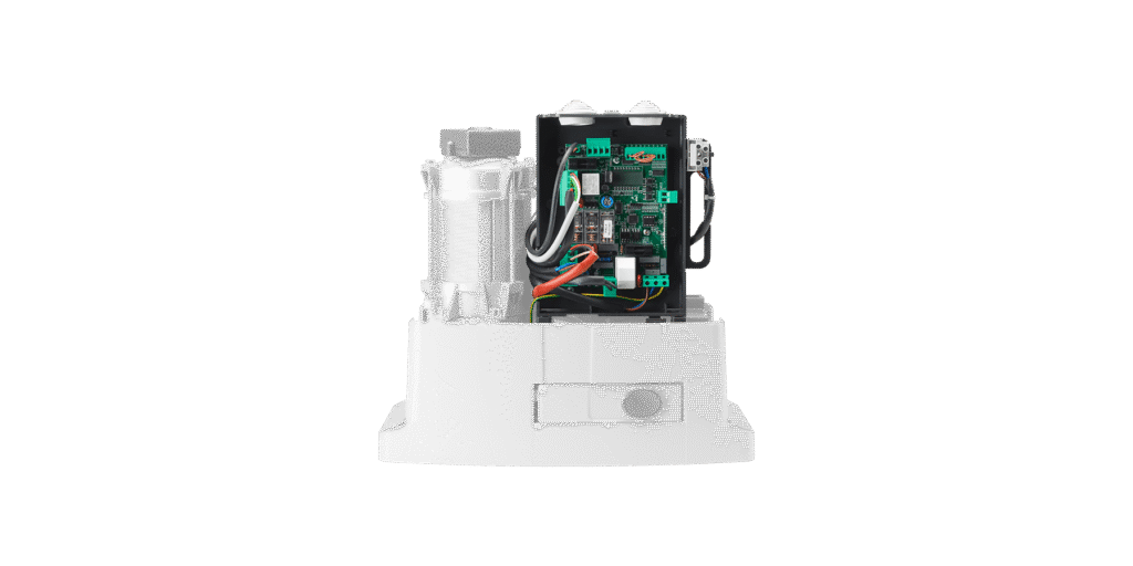 Entegre kontrol ünitesi ve kodlayıcıya sahip 230 Vac dişli motor | Kodlayıcı cihaz, kapı hareket aşamalarında ezilmeyi önler ve hassasiyet sağlar.