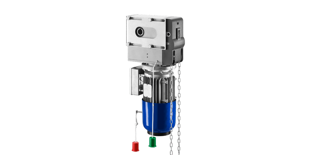 Manuel zincir hareketi ve 1/40 redüksiyon oranlarına sahip 400 Vac dişli motoru